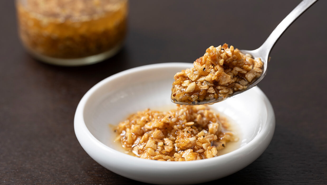 パンチのある風味が特長のローストガーリックと、ガーリックパウダーに、サクッとした食感のフライドガーリックと、ザクッと食べ応えのあるローストアーモンドを合わせた、サクサク、ザクザクとしたクリスピーな食感がたのしい焼肉のたれです。