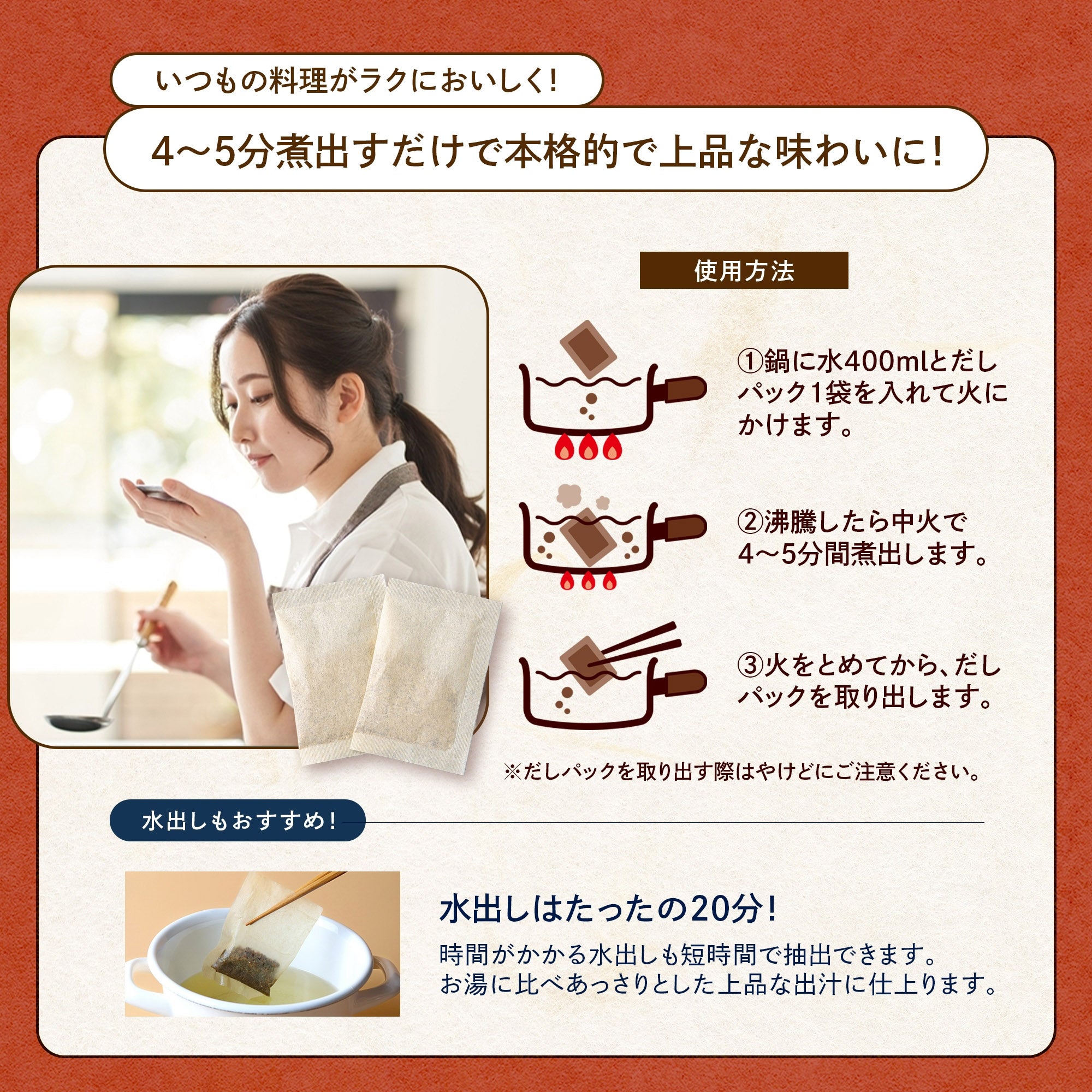 🔹 煮出しても、破って使ってもOKの2WAYタイプ