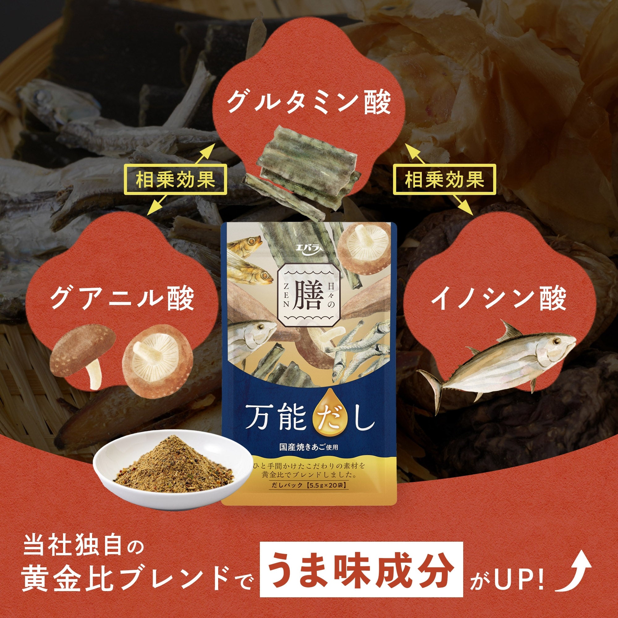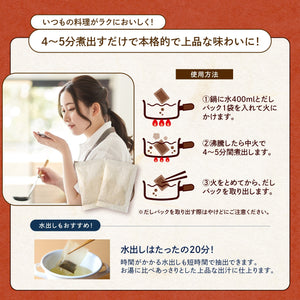 7種の厳選素材を黄金比でブレンドした、風味豊かな和風だしパックです。